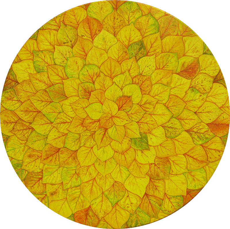 Leta 2003 sem začela razvijati cikel slik okroglega formata. Listi dreves ali cvetni listki, ki jih nizam koncentrično iz sredine formata in tečejo preko robov slikovne ploskve, dajejo občutek žarenja v neskončnost. Slike zaznamuje zelo dolgotrajen meditativen proces slikanja z natančnimi drobnimi potezami čopiča. Tudi zato na gledalca delujejo pomirjujoče (kot mandale).