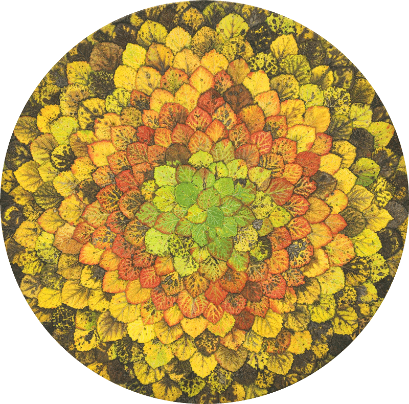 Z okroglim formatom sem želela ponazoriti večno ponavljanje, samoobnavljanje narave, staranje, minevanje življenja in ponovno rojevanje…, prehajanje letnih časov, večno kroženje brez začetka in konca, gibanje vesolja…