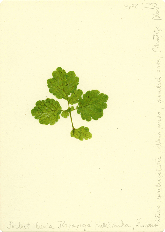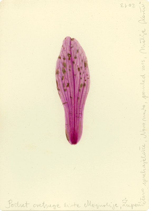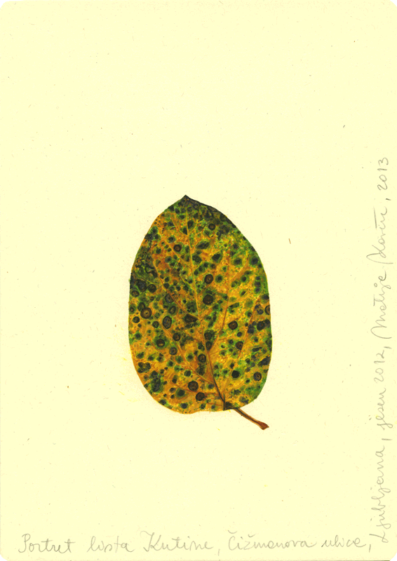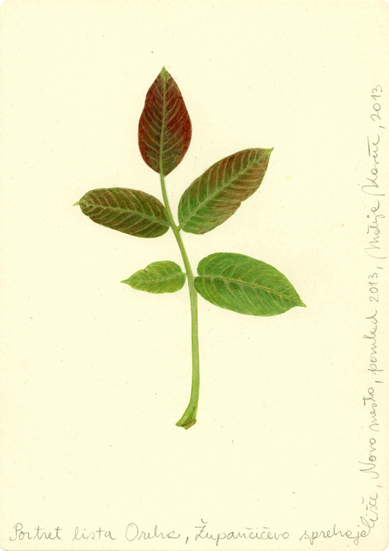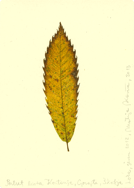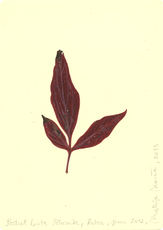 Slikati sem začela tudi male “rastlinske portrete”. Portretiranci so sicer navadno ljudje, jaz pa sem z natančnim realističnim načinom slikanja personificirala liste rastlin in s tem skušala opozoriti (spomniti), da je vsak, še tako majhen košček narave kompleksen mikrosistem, ki soustvarja naš planet in je vsekakor vreden naše pozornosti in občudovanja. (Saj je tudi človek samo delček celote narave.)