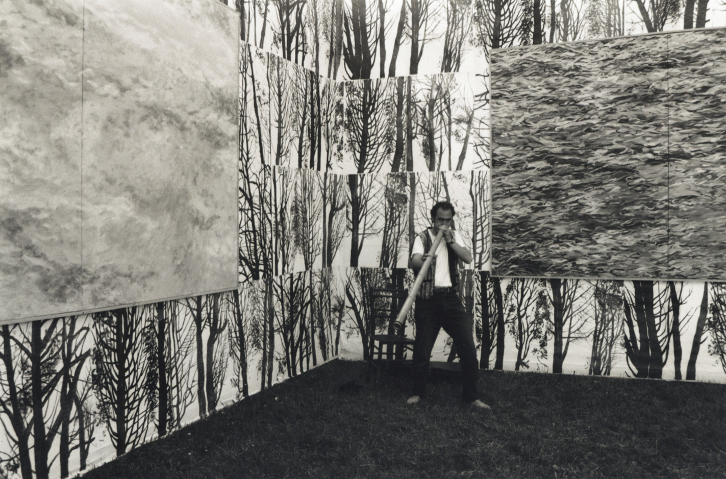 Gledalec se je znašel v naravnem in likovnem prostoru naenkrat. Štiri klasične slike v »Galeriji« so upodabljale štiri prvine narave: ogenj, vodo, zemljo, zrak. Fotokopije risb dreves, kaširane na njene stene pa so ponazarjale rast in obnovo, ciklični ritem narave. Postavitev je bila na ogled 10 dni 24 ur na dan v vsakem vremenu, kot je narava na razpolago vsakomur 24 ur na dan.