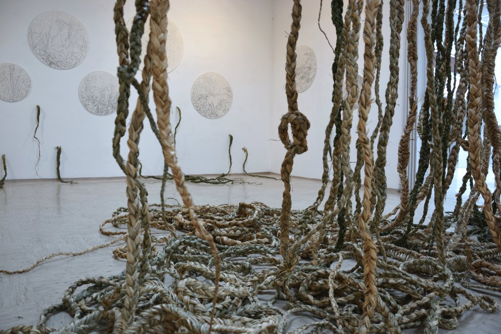 Na razstavi Zavetja (2016), v razgibanih prostorih lapidarija Galerije Božidar Jakac, sem iz materialov najdenih v naravi na licu mesta spletla in prepletla forme, ki so gledalce popeljale v večplastne zgodbe o harmoniji človeka in narave.